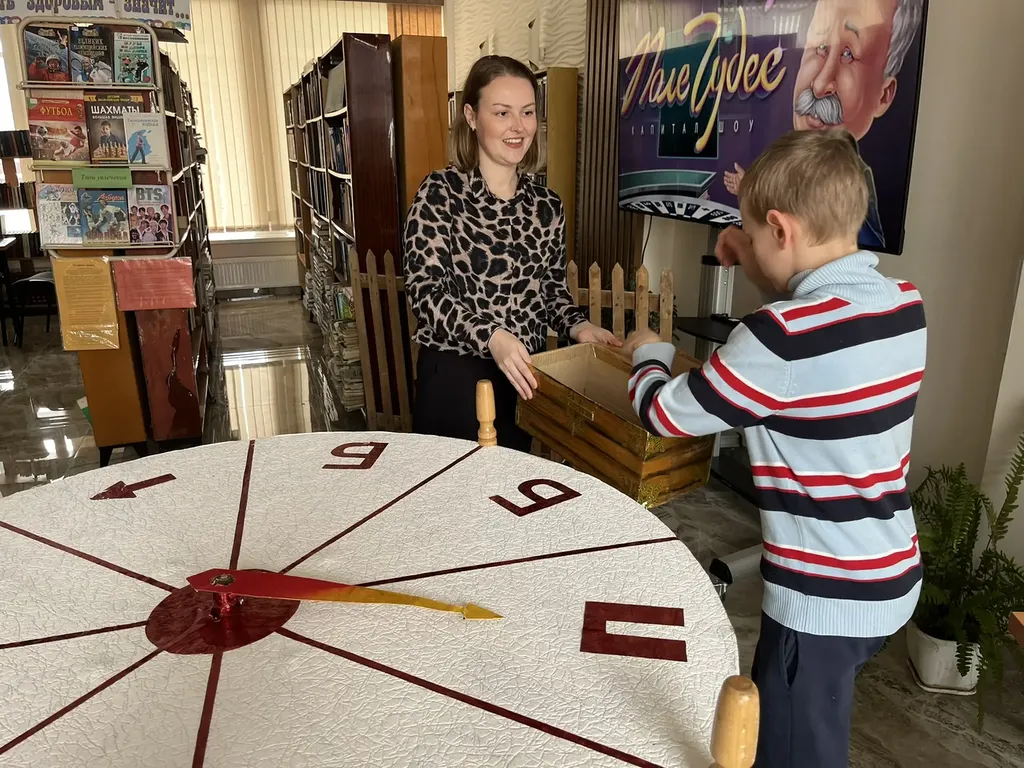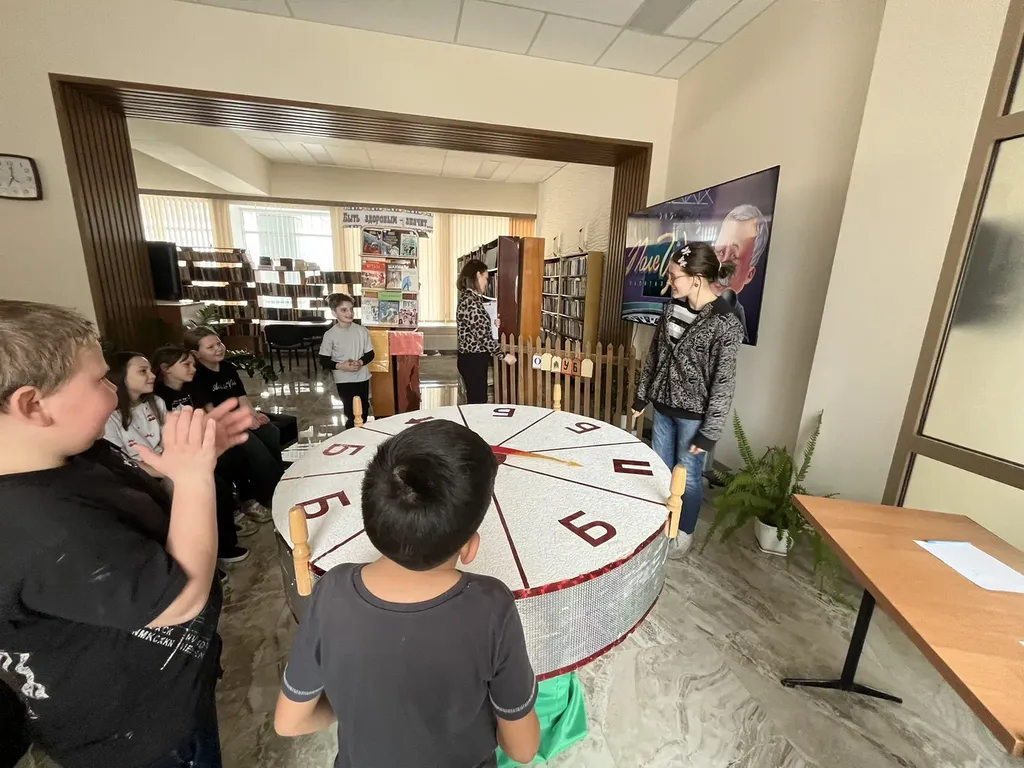 В начале игры библиотекарь тепло поприветствовала всех участников и пожелала удачи, а затем познакомила их с правилами игры. Чтобы выбрать игроков «Поле чудес», была проведена отборочная викторина. Игра состояла из трех туров, финала и супер-игры. Игроки крутили барабан, на котором выпадали сектор +, и переход хода, а также открывался всеми любимый сектор приз! Дети состязались не в силе и ловкости, а в знаниях, - кто больше знает. Буквы открывались одна за другой. Участники отлично справились со всеми предложенными заданиями.